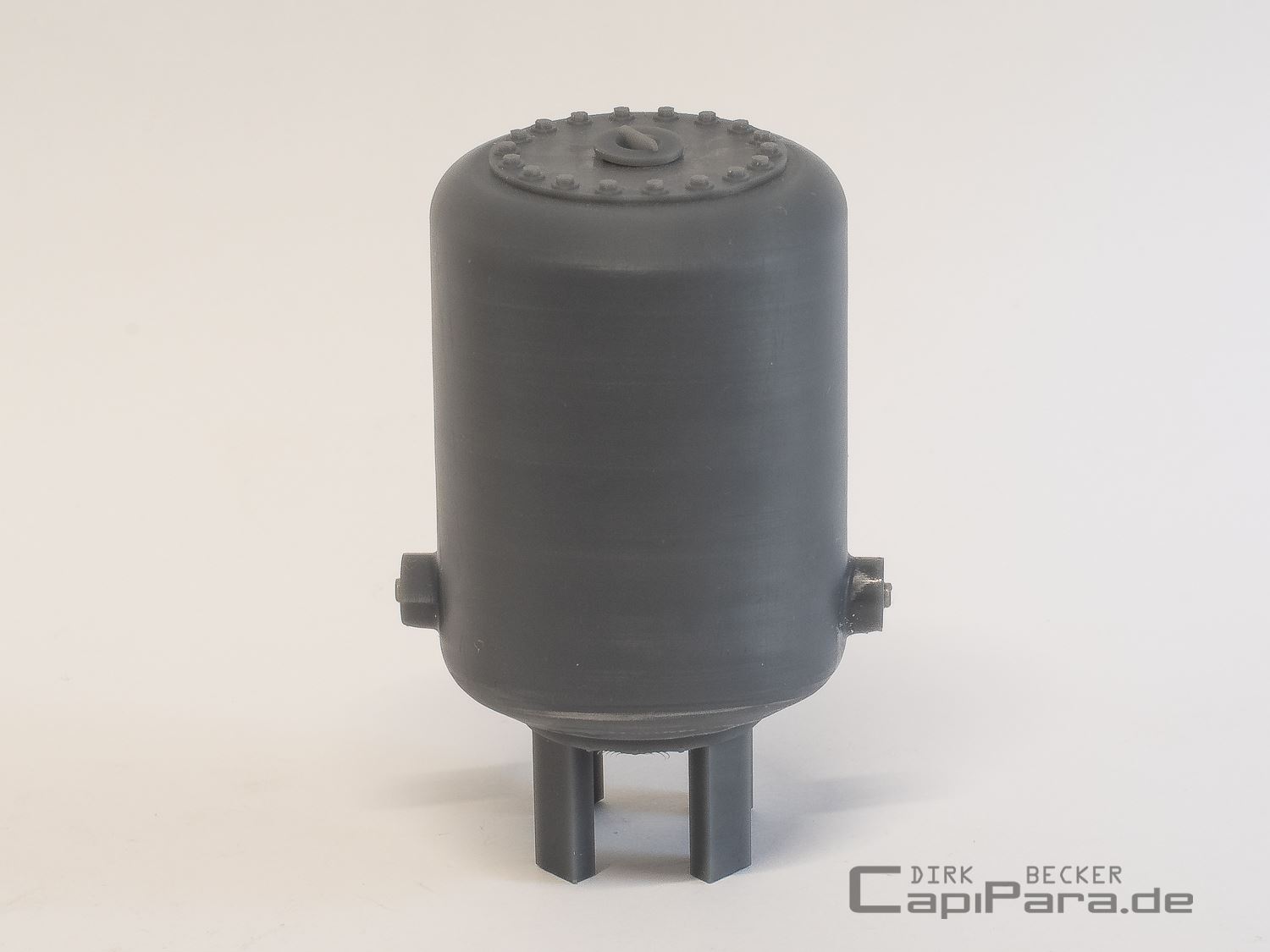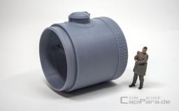 Stehender Druckluftkessel - Speichermedium für jede Druckluftanlage in Werkstätten oder als Filter für Flüssigkeiten aller Art und ähnlichem. Zwei seitliche Anschlüsse für das Rohrsystem 280 (8,75 mm).