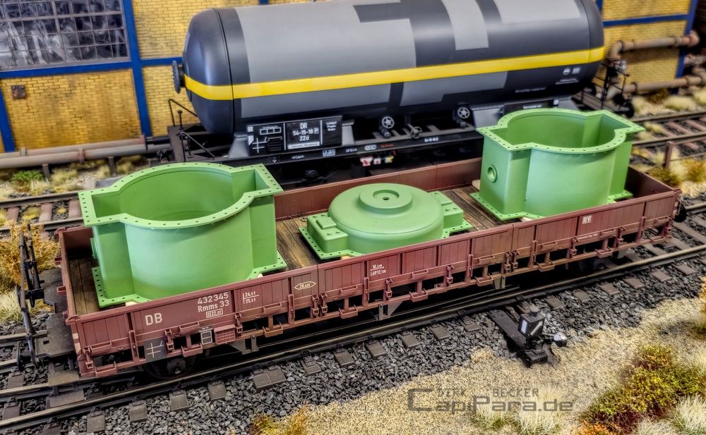 Sicherlich sind bei der großen Eisenbahn viele (Flach)Wagen leer unterwegs, aber eben nicht alle. Für die Beladung unserer Modelle gibt es hier passendes LADEGUT. Jedes Ladegut wurde auf einem SS15 vom KM 1, auf einem Rmms von Märklin oder auf einem SSyms von KISS erprobt, kann aber natürlich auch bei anderen Wagenbauarten verwendet werden. Und natürlich lassen sich alle Teile aus dieser Rubrik auch auf der Ladestraße, im Fabrikgelände oder auf dem Anschlussgleis gut platzieren.