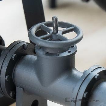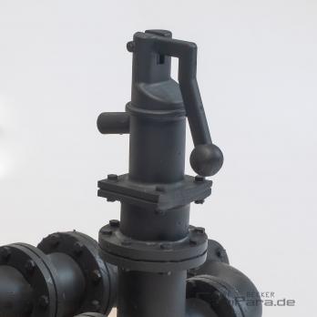 * Alle Absperrschieber werden ohne Stahlstift/Gewindestift geliefert. Je nach gewünschtem Detailgrad diesen bitte aus der heimischen Bastelkiste verwenden. Eine Gewindeschraube M 1 mit abgeknipsten Schraubenkopf tut es manchmal auch.
