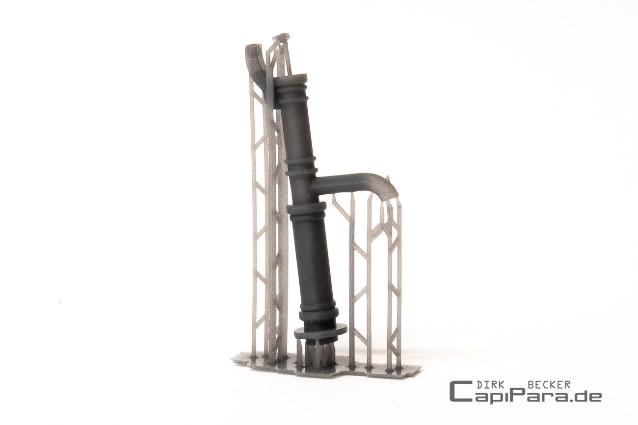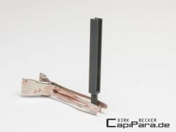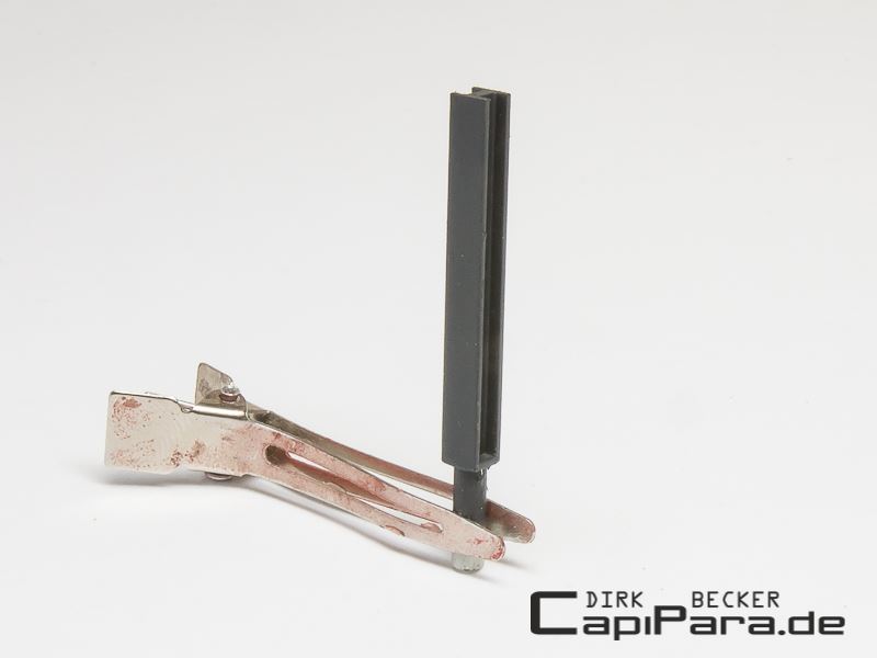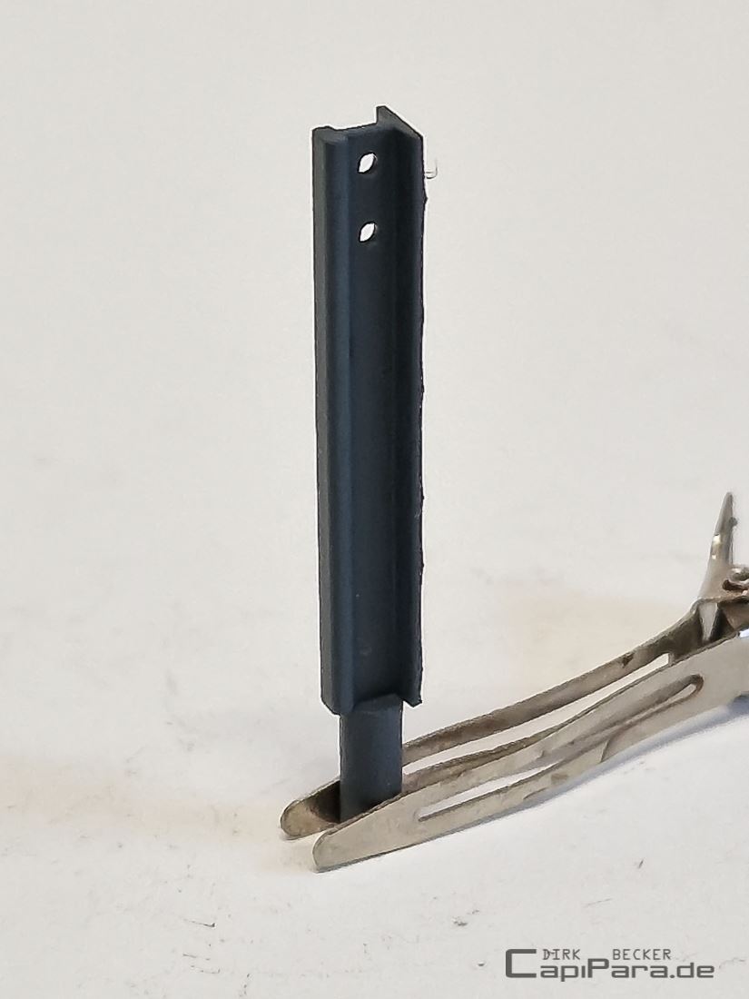 #2407 - Geländer-Pfeiler aus Schienenprofil, zwei Bohrungen, Länge über Gelände = 34 mm