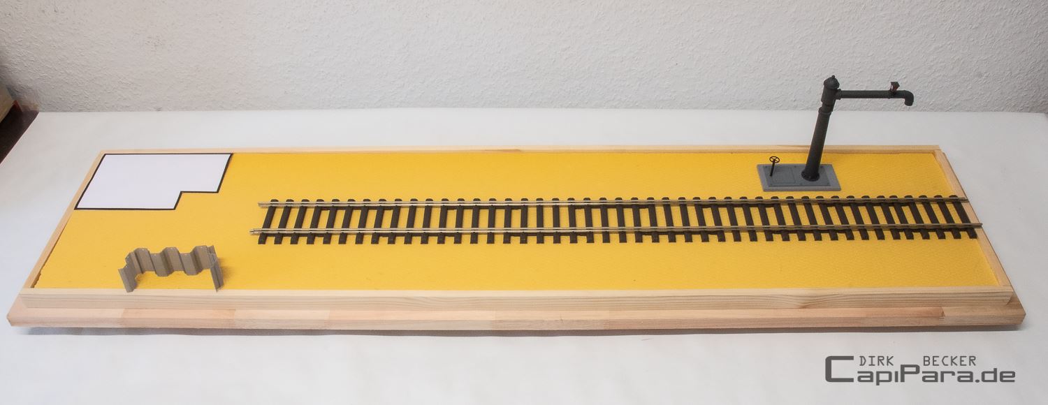 Auf dem Diorama werden wieder zahlreiche Teile aus dem eigenen 3D-Drucker zum Einsatz kommen. So wird es einen Wasserkran, den typischen DR-Prellbock, eine Spundwand und noch einiges anderes geben.