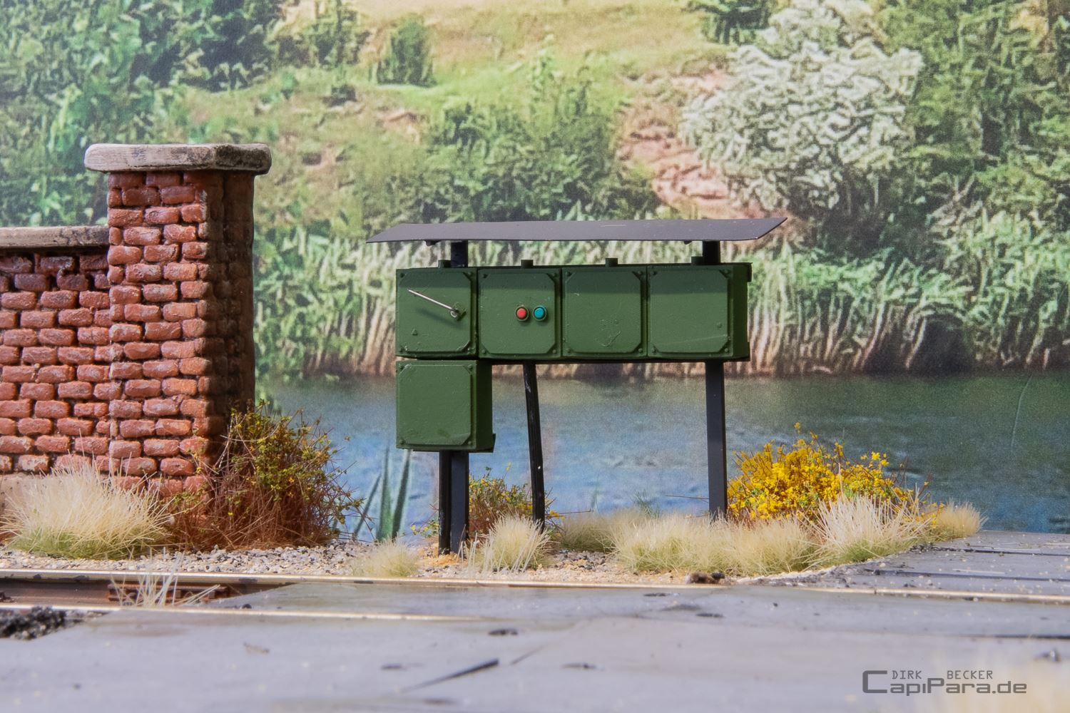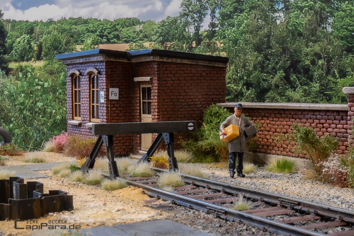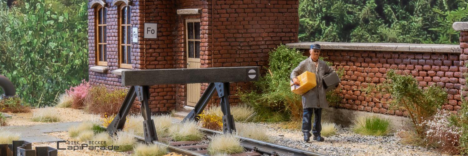 Ganz spontan, 49 Tage vor der Messe in Gießen 2024, wurde der Entschluss für ein neues Diorama gefasst. So entsteht neben dem Diorama Km 18,4 ein weiteres Schaustück für Foto- und Präsentationszwecke. Ein Gebäude und eine Mauer kommen von Waller-Modellbau, dazu wieder viel selbstgemachtes aus dem Drucker.