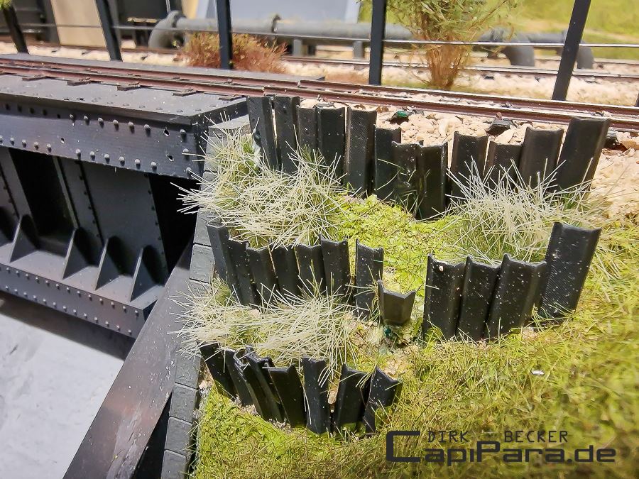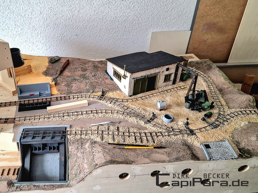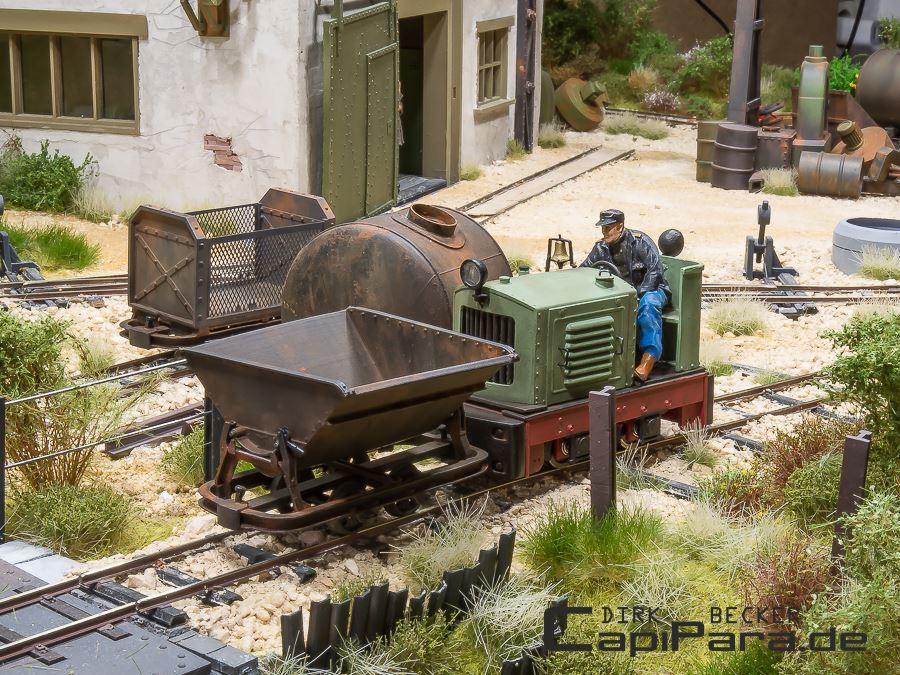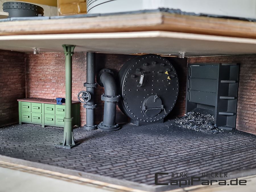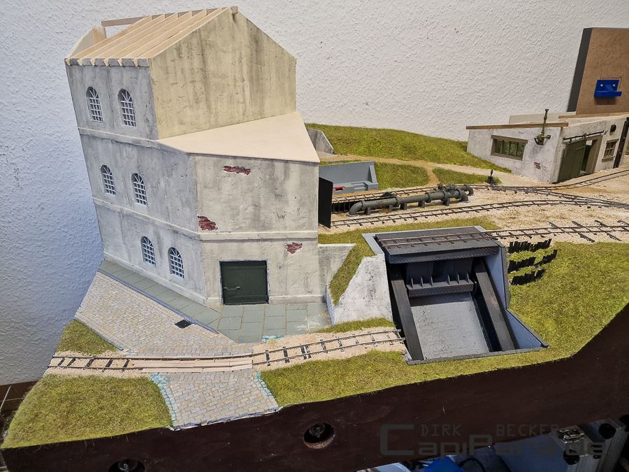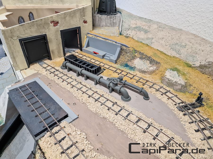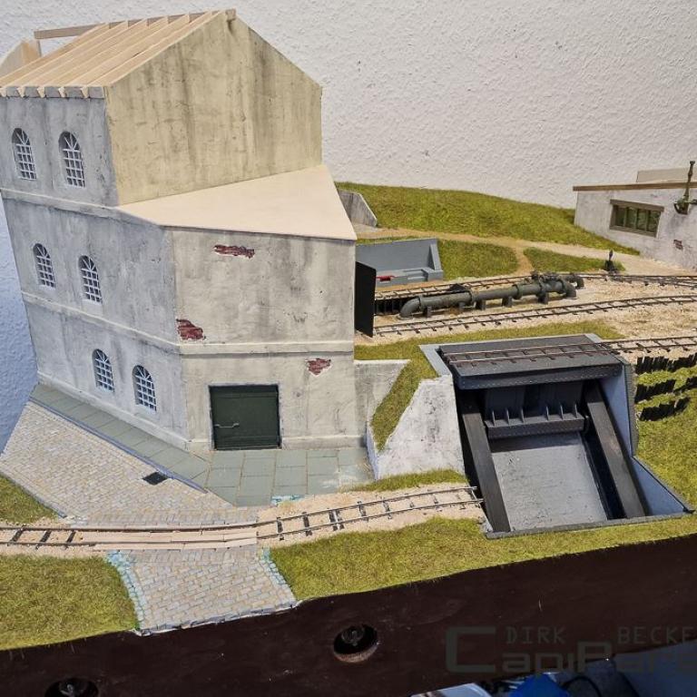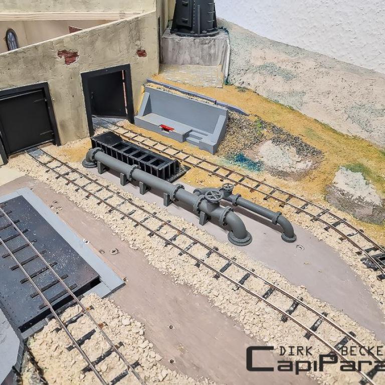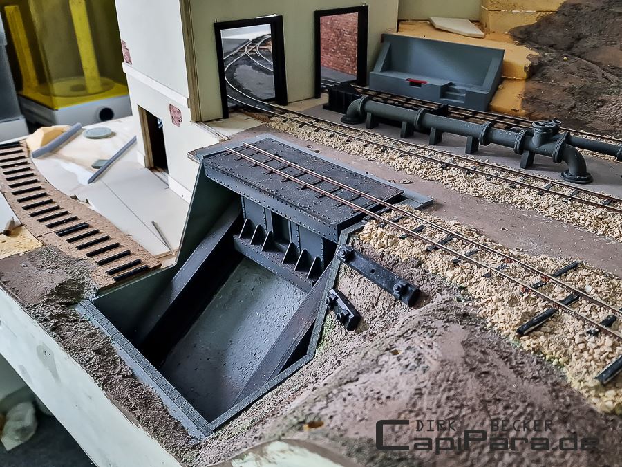 Von Anfang an gab es die Idee, das Entladen der Kohlen für die Dampfmolkerei real darzustellen. Die Kipploren sind dafür bestens geeignet, aber echte Kohle wollte ich auch mehreren Gründen nicht verwenden. So kam auf in diesem Fall der 3D-Drucker zum Einsatz und es entstanden bis jetzt ca. 2000 Stück Briketts. Diese wurden aus schwarzem Resin hergestellt, sind also durchgefärbt und farblich nicht weiter behandelt. Sie sind formstabil, wiederbeschaffbar, leicht an Gewicht, kostengünstig und sind vor allem ohne Abrieb schütt- und kippbar. Sobald auf der Anlage die Entladevorrichtung eingebaut wird, gibt es hier dazu neue Infos und Bilder.