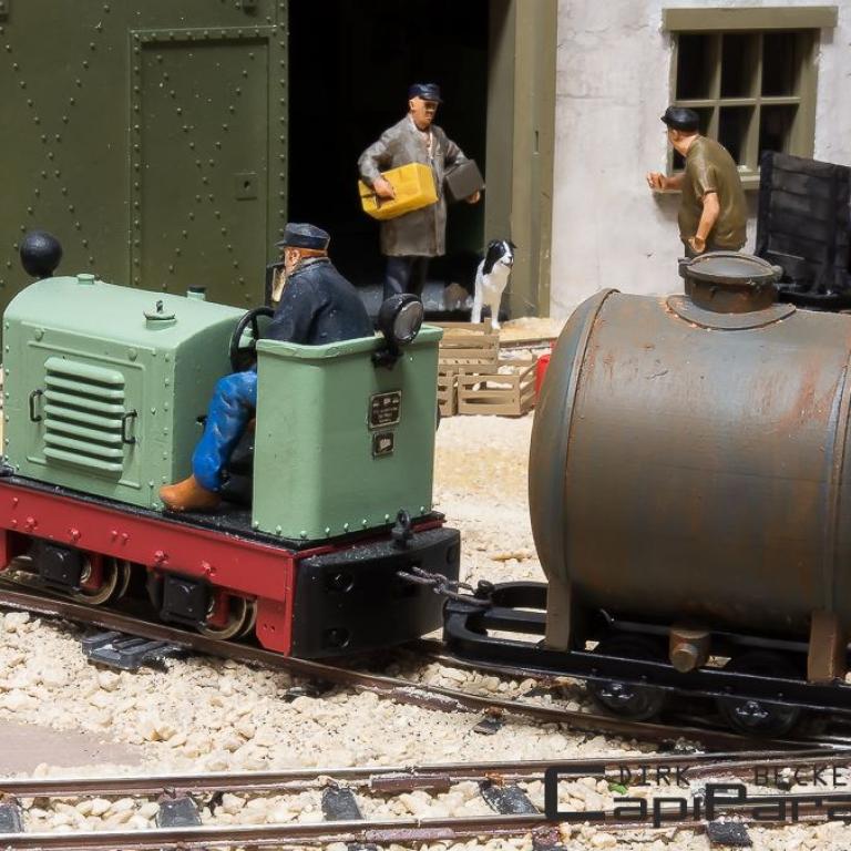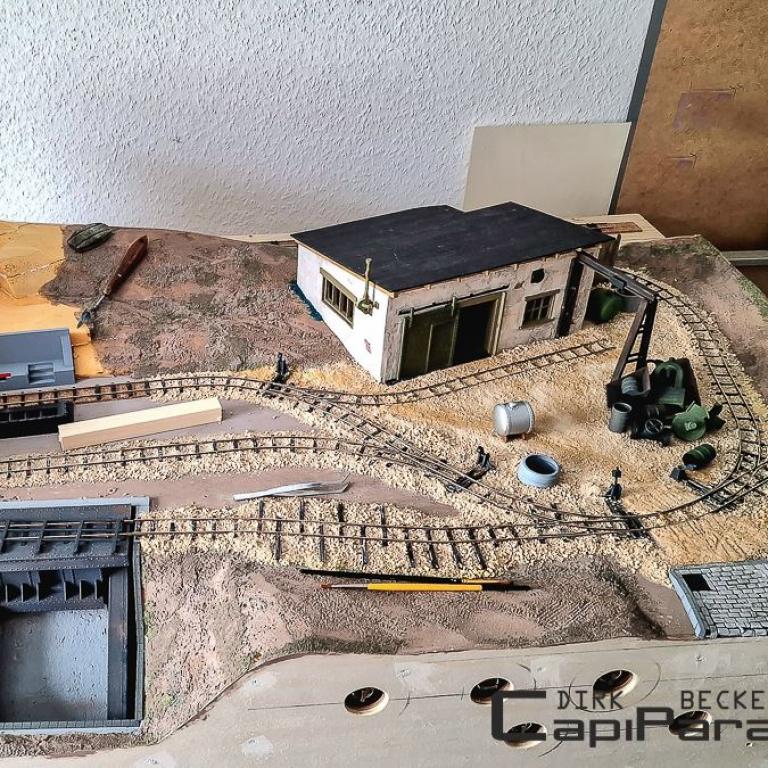 Ende August 2022 wurden die ersten der bestellten 1f-Fahrzeuge geliefert, und zeitnah ging es los mit dem Anlagenbau. Parallel neben dem Anlagenbau entstehen etliche Kleinteile wie Milchkannen, Milchkästen, Holzkisten, Briketts, Aschetonnen, Heizlüfter, Stahlschwellen, ein Rohrsystem, eine Stehkesselrückwand und ein Dieselmotor mit dem 3D-Drucker. Diese Modelle aus dem Drucker werden auch für andere Spur-EINS-Modellbahner angeboten.
