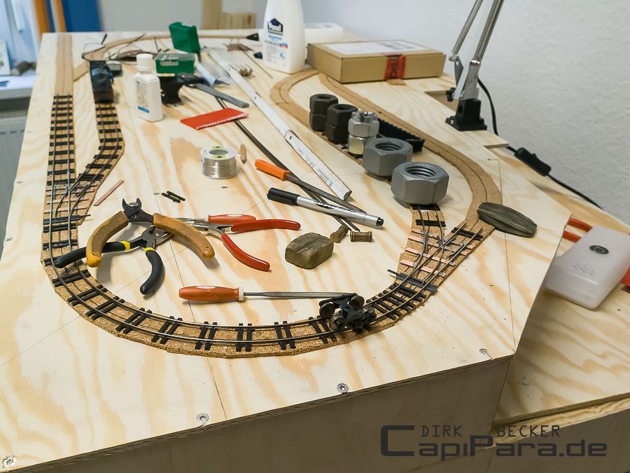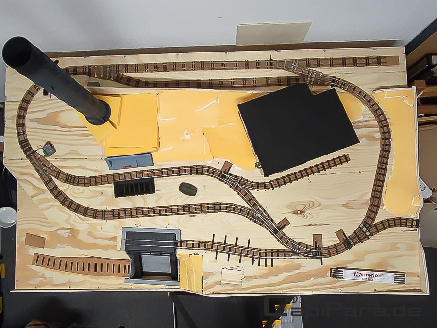 -*- Ringstrecke -*- M 1:32 -*- 16,5 mm Spurweite = 500 mm -*- Gleise & Weichen im Eigenbau -*- DCC Loksound -*- Kurvenradius > 18 cm -*- später erweiterbar -*--