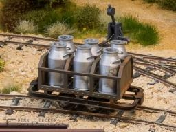 Die allerorts anzutreffenden Muldenkipploren übernehmen auch bei der Dampfmolkerei den Transport von Kohlen und Schüttgütern. Für die innerbetrieblichen Molkerei-Transporte hat die Betriebswerkstatt aber allerlei Spezialloren und Aufsätze gebaut.